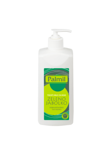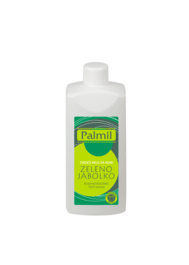 Tekoče milo za umivanje rok. Učinkovito in nežno očisti roke, pH nevtralno, primerno za vse tipe rok, tudi bolj občutljive. Vonj zelenega jabolka prijetno odišavi roke. Palmil tekoče milo je dermatološko testirano in varno za uporabo.